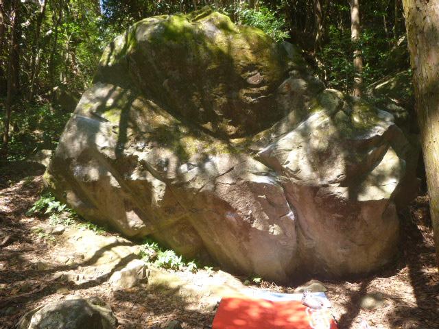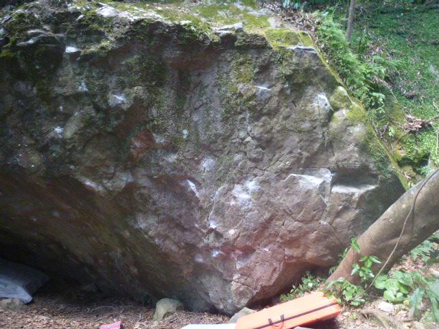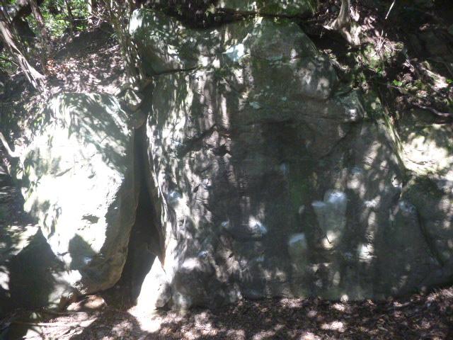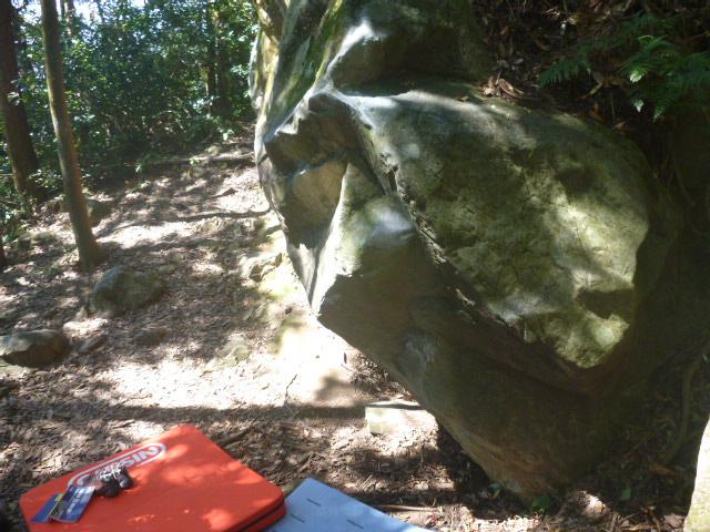 駐車場よりアプローチほぼ0分の不動岩下エリアを目指して行ってみたは良いものの、目印があるわけではなく、少し迷いました。入口の道路の向かい側に小さいルート(ボルトが打ってあります)がある岩が目印です。