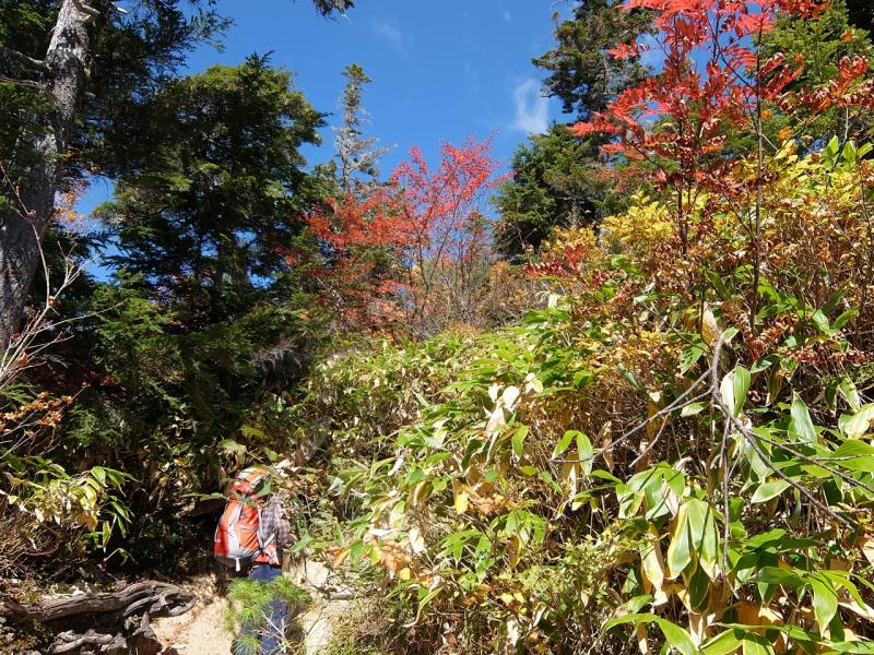 上部はズルズル滑るザレ、中部は10回を超す渡渉と巨石や巨木を超える荒々しいルート、下部はここまで痛めつけた体を再度痛めつける急登など、さすがに父も体が苦しい様子でした。