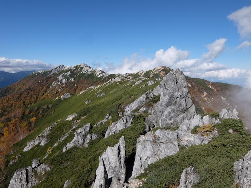 燕岳から見える北アルプスの稜線はどこも綺麗に紅葉していて、素敵な空間でした。
