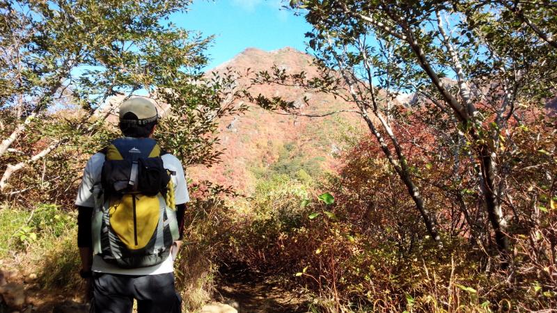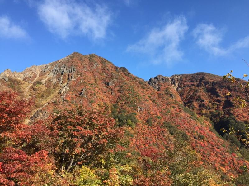 その後朝日岳に向かう途中の鎖場周辺からの紅葉も見応えがありました。