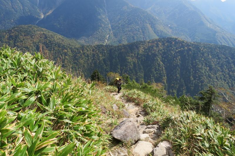 高度を稼げる笠新道は杓子平までほぼ直登ルートでひたすら登り坂。
