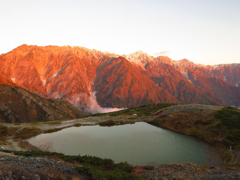 そして八方池からは最高の御来光・モルゲンロート・初冠雪・三段紅葉が見れて最高の朝活だった。