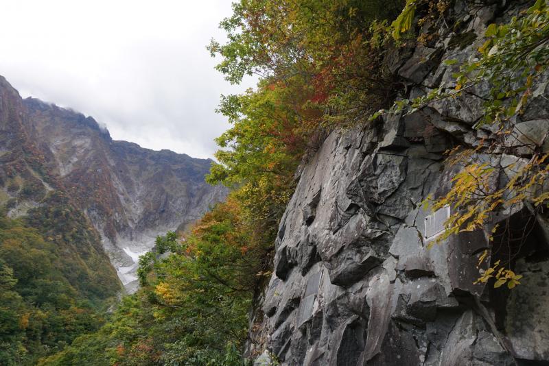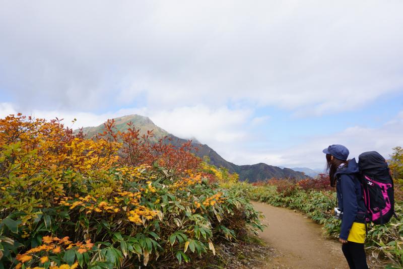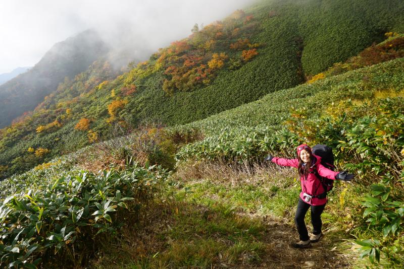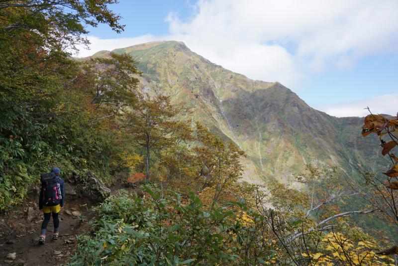今まで歩いてきたササ原やブナ林など美しい森も多い一方で、近付き難い岩壁を見て、改めて優しさと険しさの両面を持った山だと感じました。