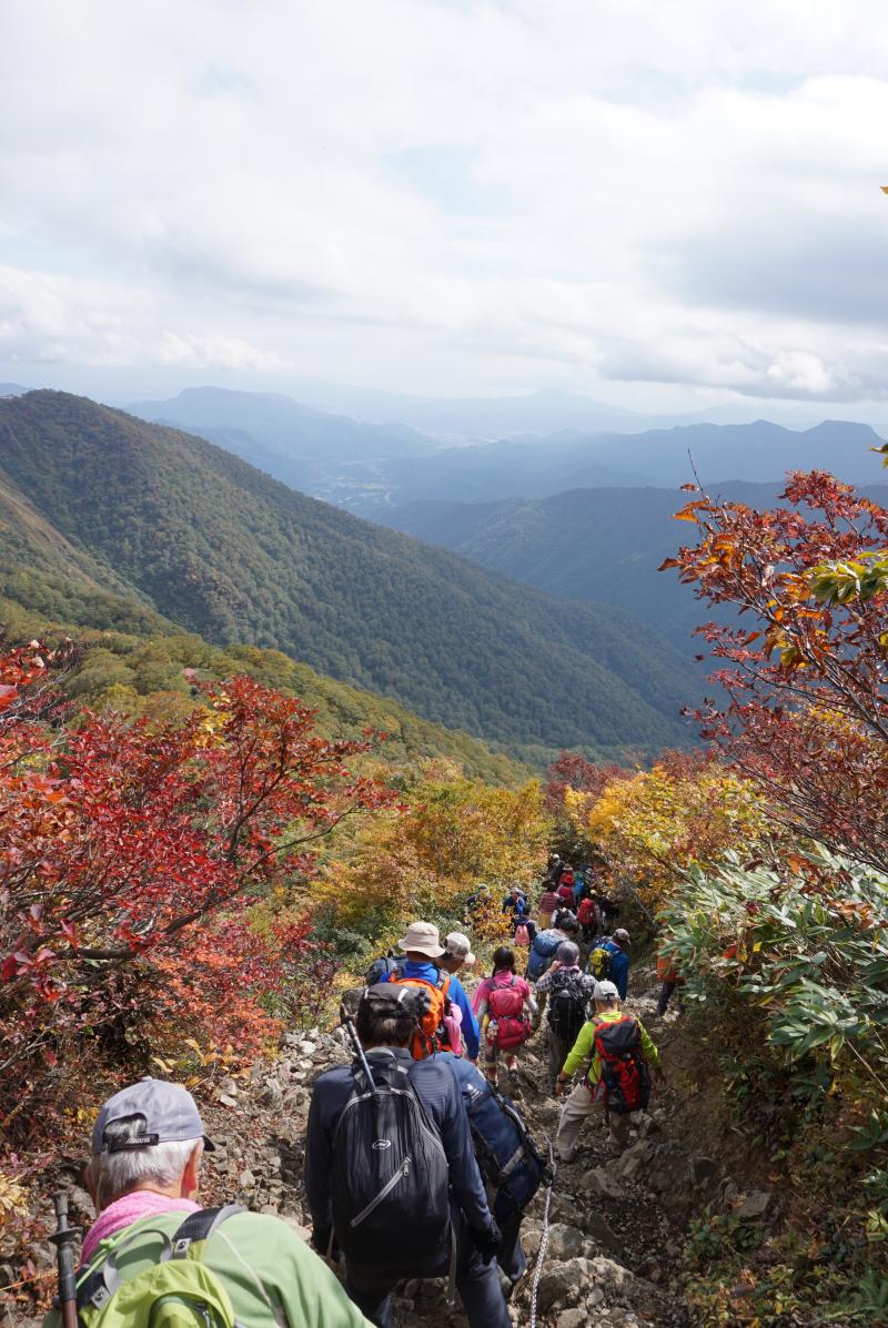 紅葉は丁度見頃で、一番ポピュラーな天神尾根は観光客の方も多く、色とりどりの葉と相まってより一層賑やかです(*^_^*)
