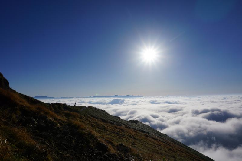 7時前ヒュッテ付近は視界が悪かったのですが、10分ほど下ると一気に晴れ間が。