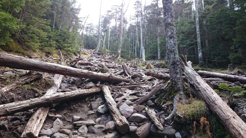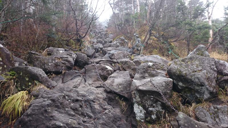 山頂直下の急坂は大きな岩がゴロゴロしていて、濡れていると大変滑りやすいので、注意してください!