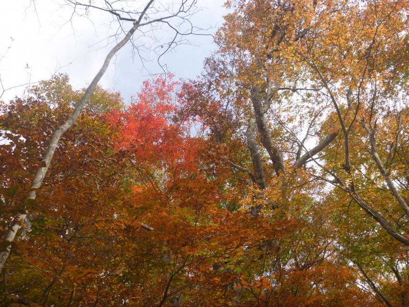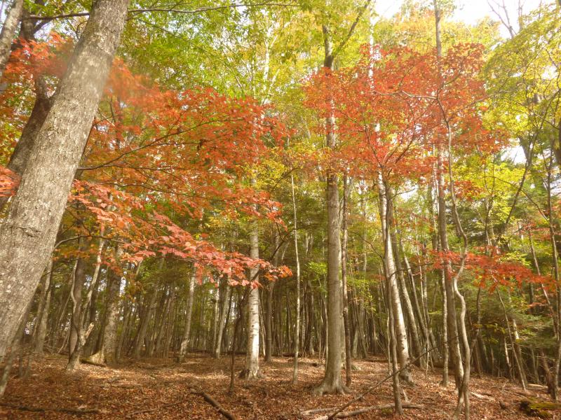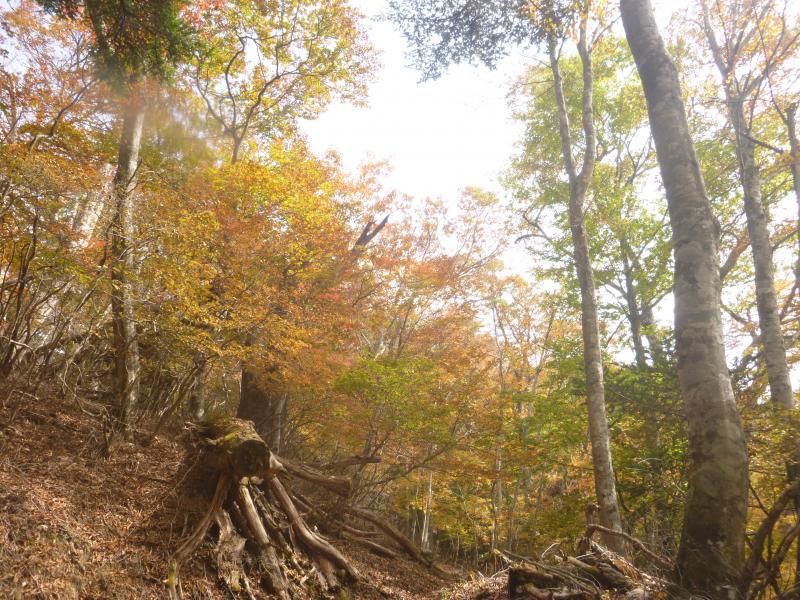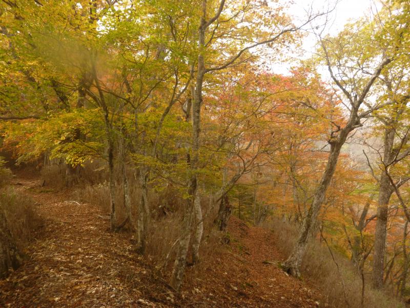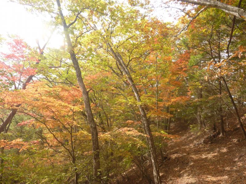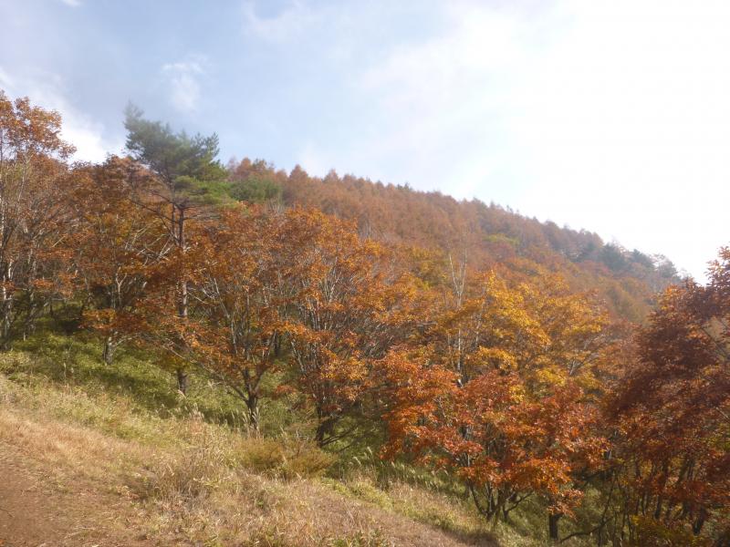 ○牛ノ寝通りの紅葉は色付き半分程度、でした。ピークはおそらく10月末くらいでしょうか。遠くに見えた大菩薩嶺の稜線の紅葉は今が見頃でした。