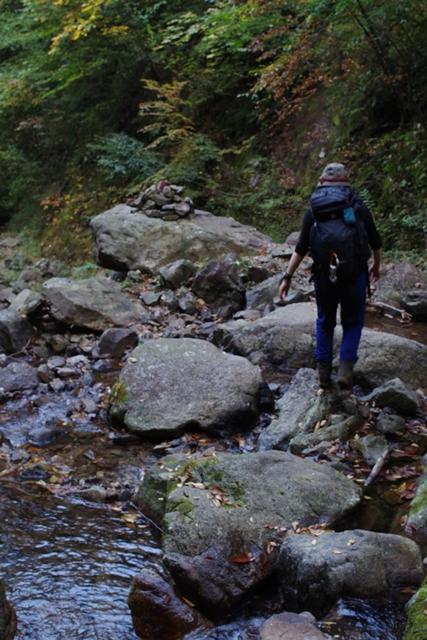 下山の上畑コースは、川を何度か渡渉します。
