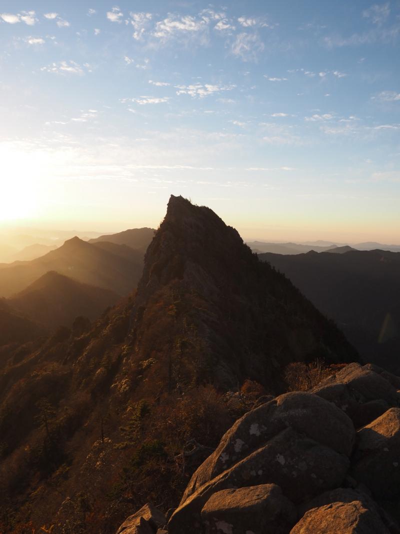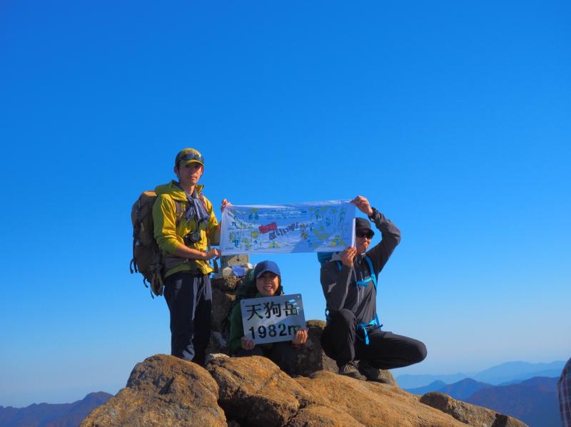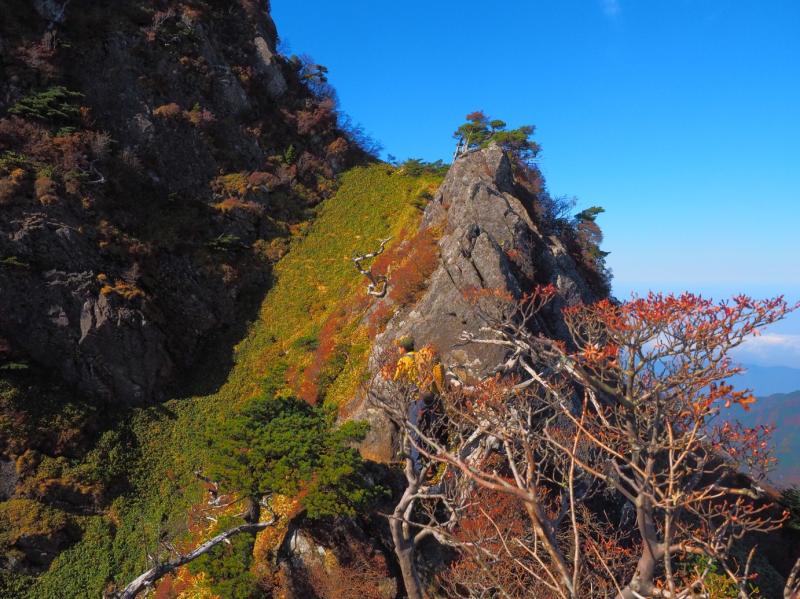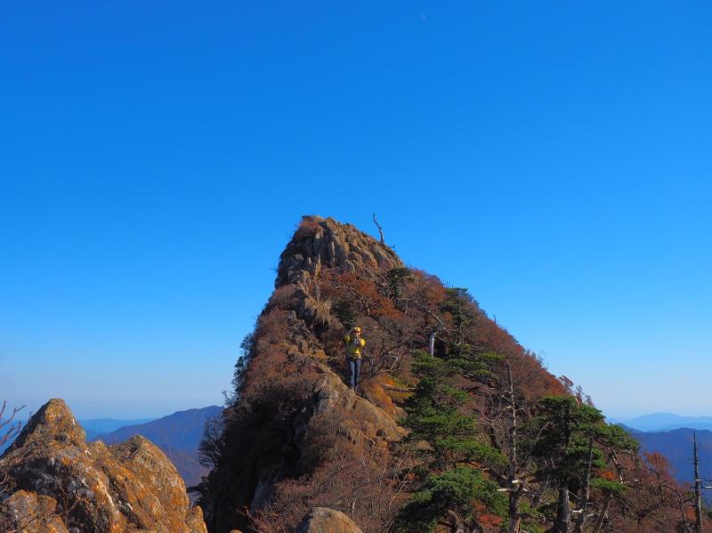 ヨコバイを抜けると程なくして南尖峰に到着、そこから絶景を眺めつつ岩場の稜線を歩けば西日本最高峰「天狗岳」です。