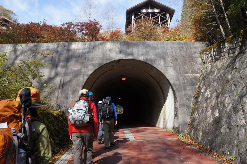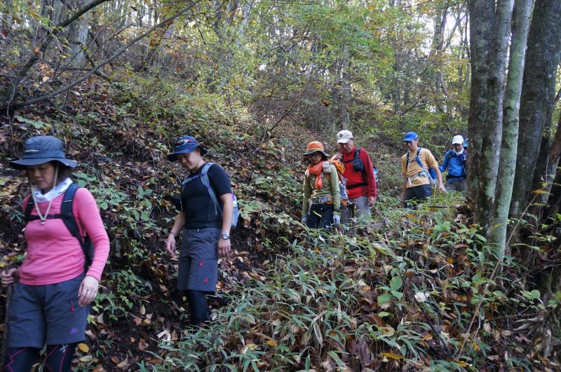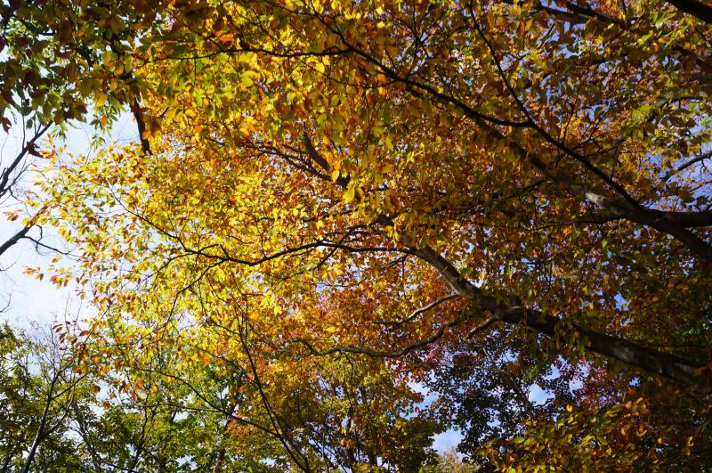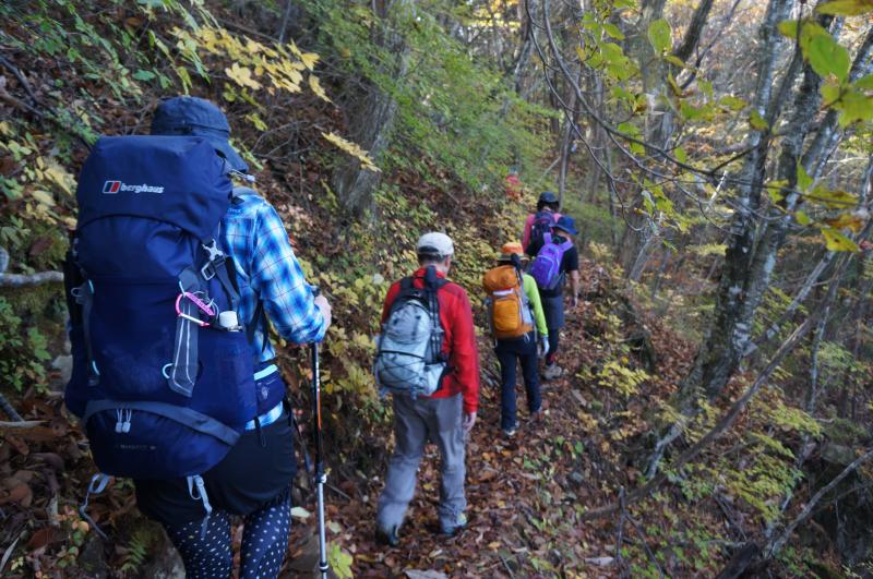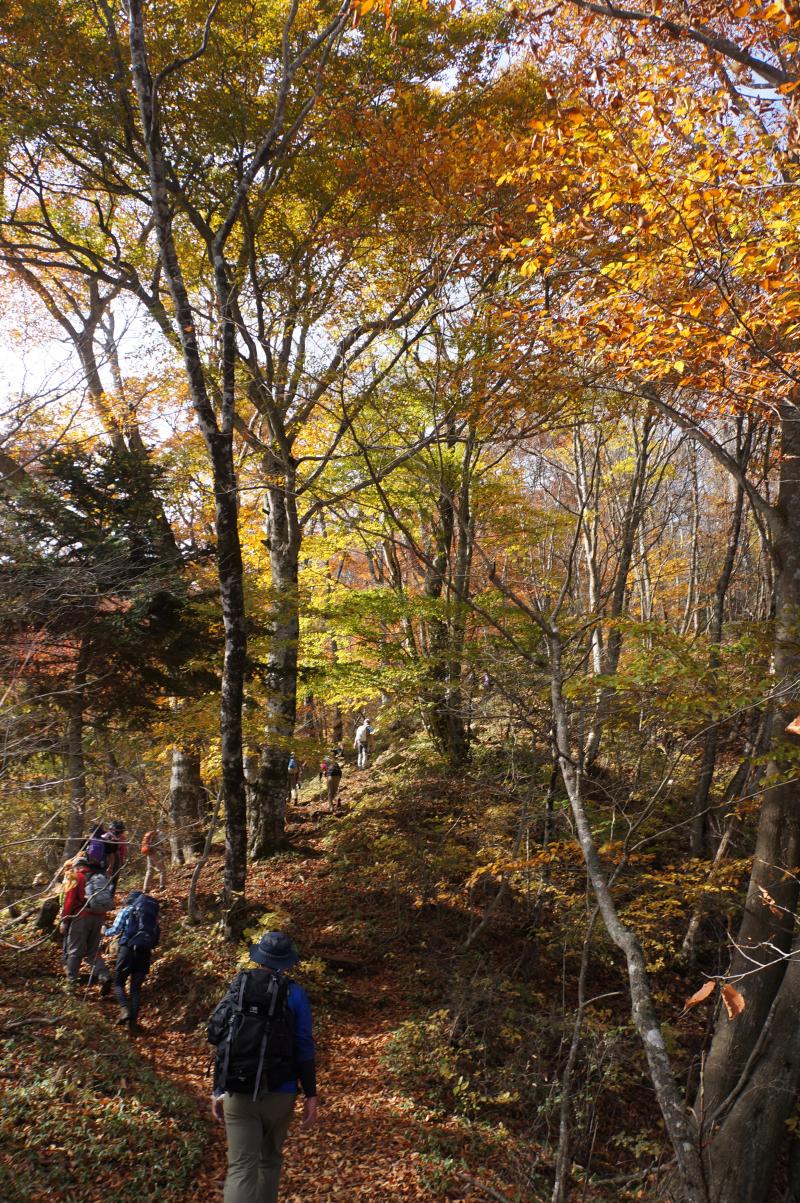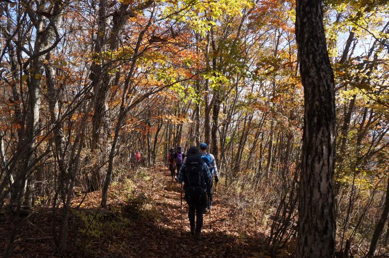 山肌はオレンジ色に染まりつつ、すでに落ち葉もたくさん。