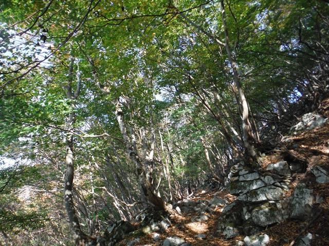 急斜面を滑らぬように慎重に下りきると樹林帯となり落ち着いた道となり、ぐんぐんと標高を下げていきます