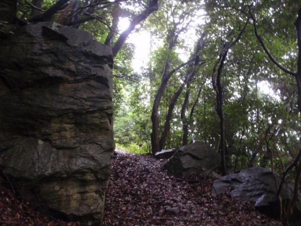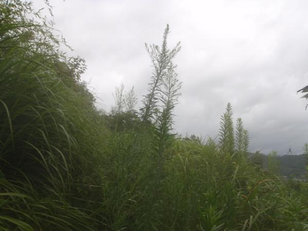 - カキ畑を越えてから一部、草がうっそうと繁りとても歩き難かったです。人もあまり登っていなかったようで、くもの巣をかき分けて登りました。この時期は蚊などが寄ってくるので、夏以外が季節的に適しています。