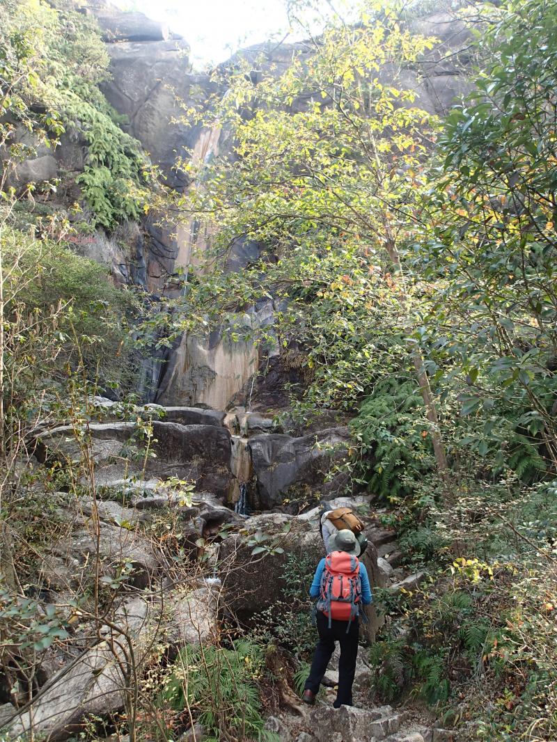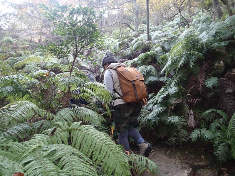 500mほどもない山ですが、山道は、シダはジャングルのように、ひょっこり滝もあり、