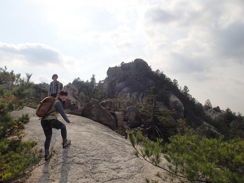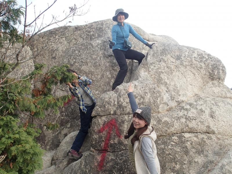 天狗岩はなかなか登りごたえのある岩ですが、登りやすいような踏み跡があり、