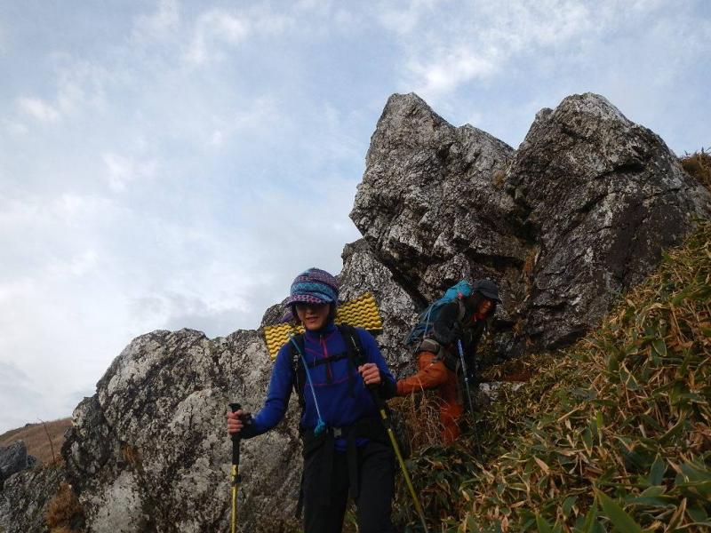 高の瀬からの下り道 一か所岩場通過の際、岩場の方が安全。少しマキ道あるが、やせ尾根。