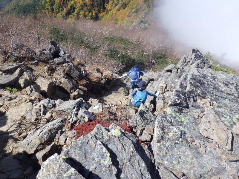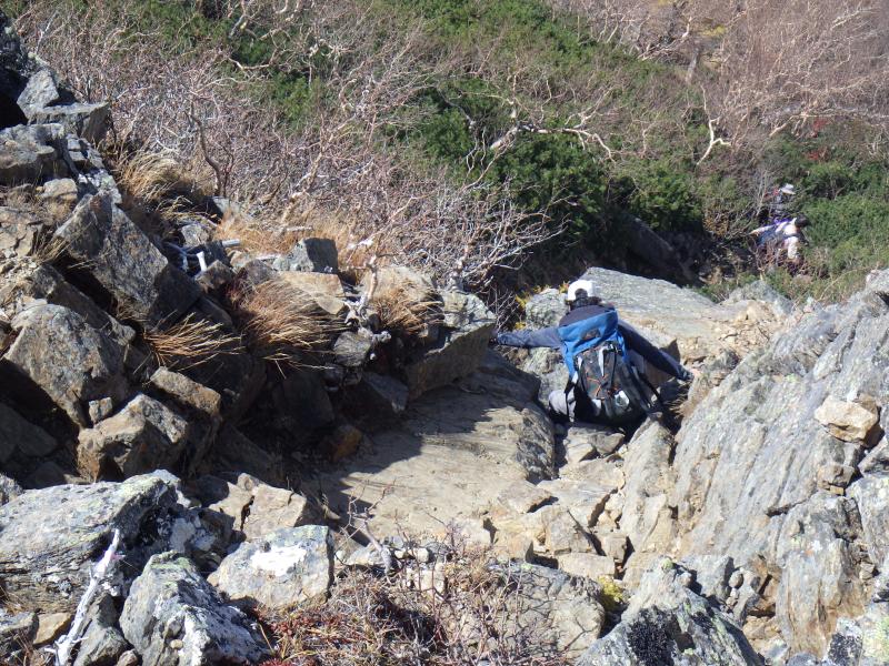 高嶺から急なゴーロが続きます。浮石も多いので足元をよく確認しましょう。
