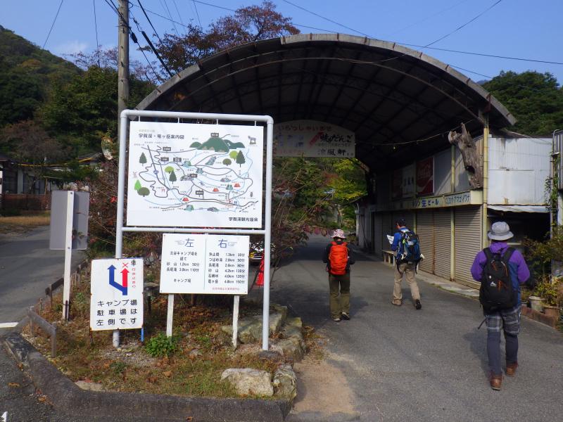 - 宇賀渓観光案内所(25分)遠足尾根入口(60分)遠足尾根・新道分岐(70分)金山尾根分岐(30分)竜ヶ岳(90分)白滝丸太橋(25分)観光案内所