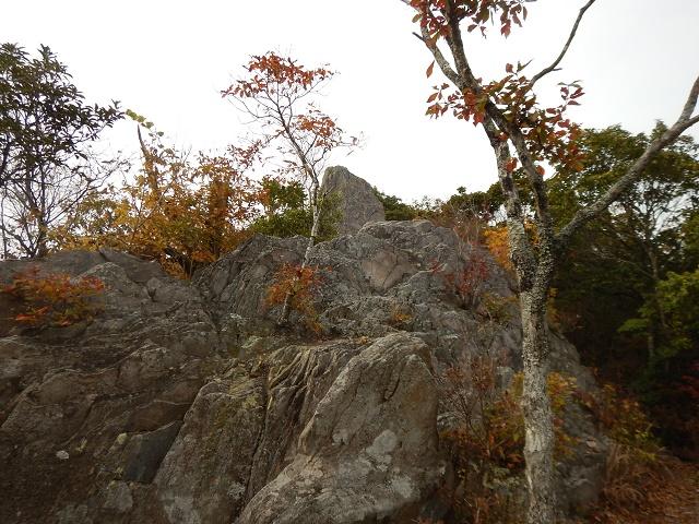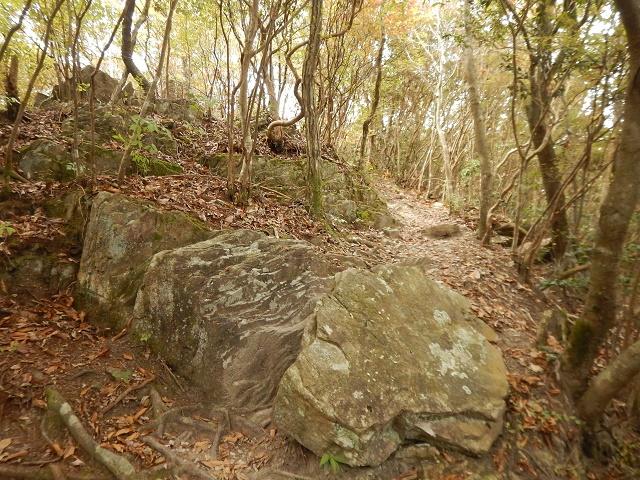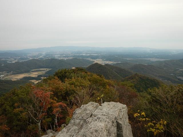山頂手前に岩場があり、岩場の上からは180度の展望が広がり六甲山もみえます。