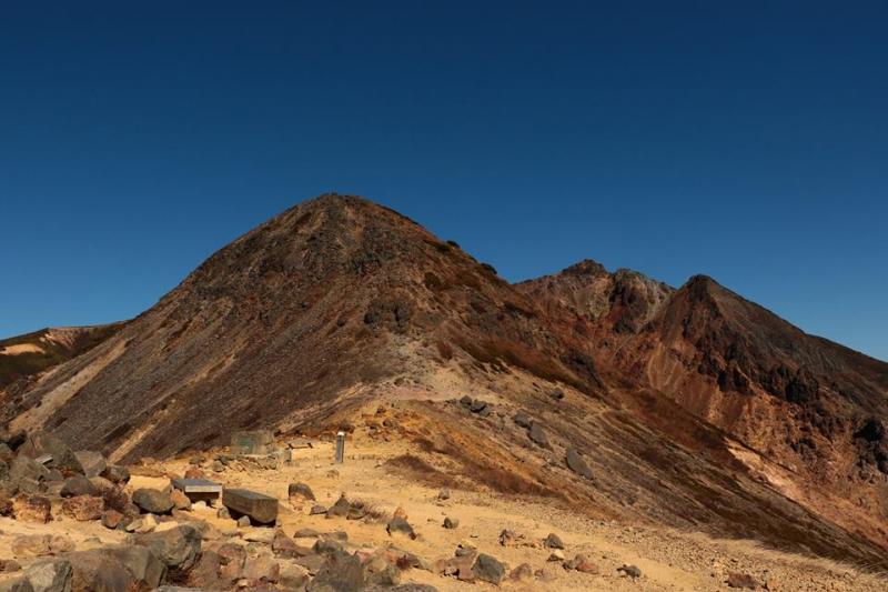 快晴の朝日岳、茶臼岳