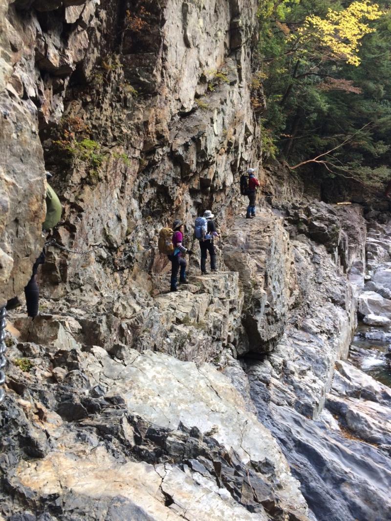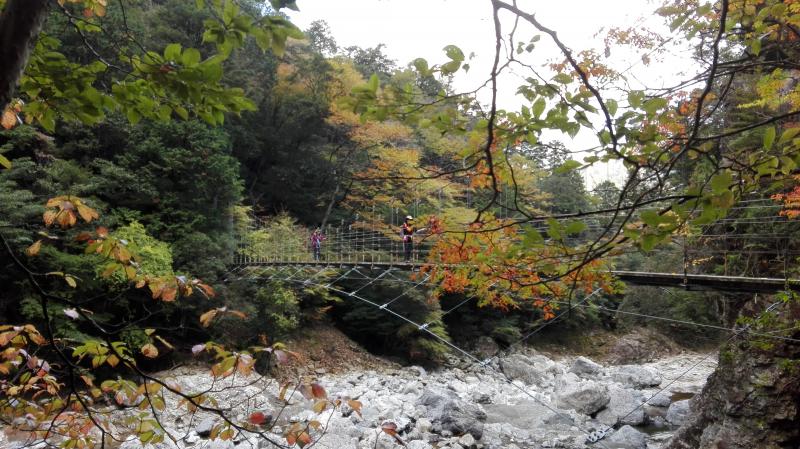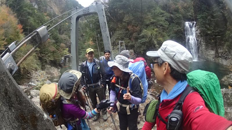 近鉄、JR、登山バスを乗り継いで大杉谷の登山口にお昼頃到着。身支度を整え出発するやいきなりの大日嵓。そのあとも吊橋や滝のオンパレードで息つく暇もありません。シシ淵が目に飛び込んできた時には思わず感嘆のため息が出るほど。
