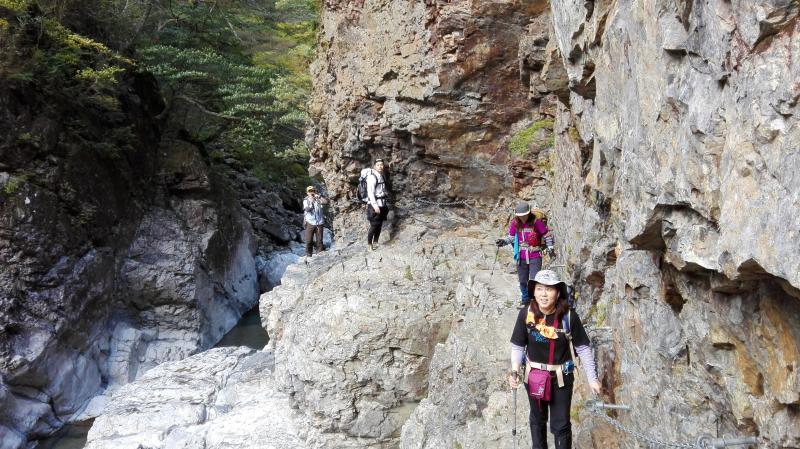 2日目も堂倉滝までは七ツ釜滝や光滝、大崩落跡など次々に見どころが現れ、カメラをしまう暇がないほどです。
