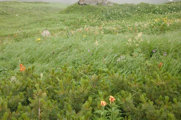 今回は6人パーティーでわいわい行きました。たまにはこういう山歩きもいいなー。天気は良くなさそうな予報でしたが入山してみると意外と晴れ間もあり、雷が心配で急ぎ足で歩きましたが結局テント場でしか雨に打たれることもありませんでした。