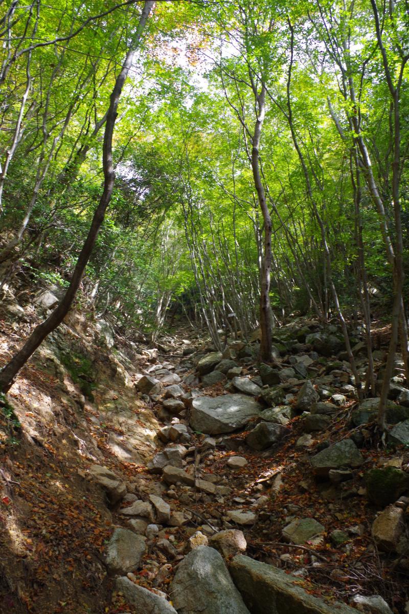 白谷登山道は、谷を左右に何度も行き来します、ルートファインディングに注意してください