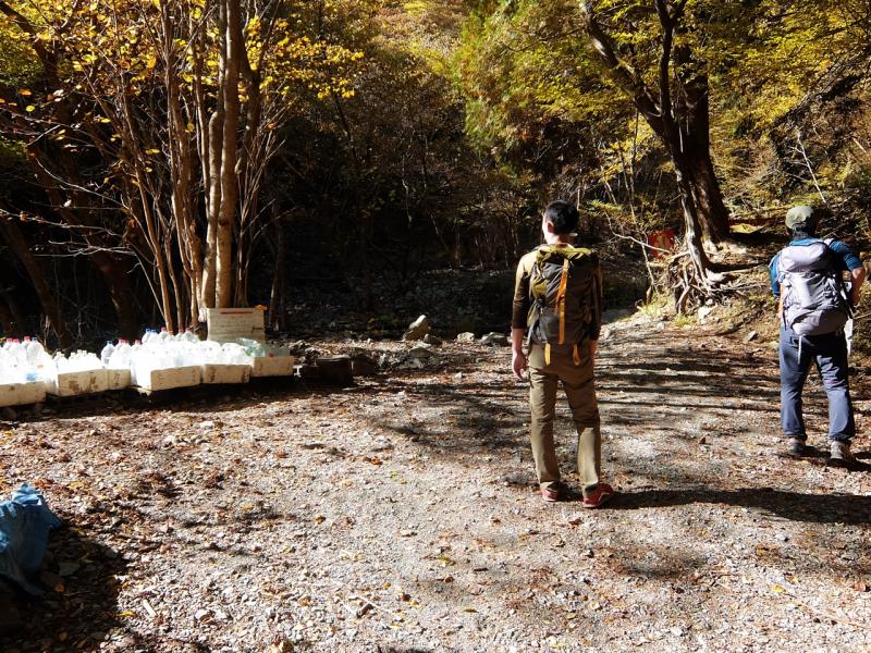 緊急看板2(鍋割山荘の水ボトル置き場反対)からマルガヤ尾根928ピークまではルートマークや明白な踏み跡は無い。