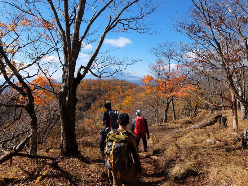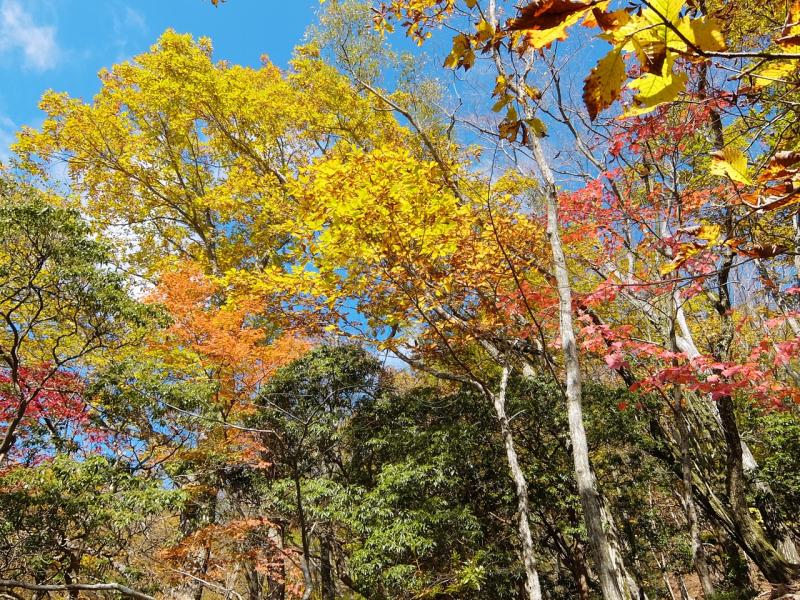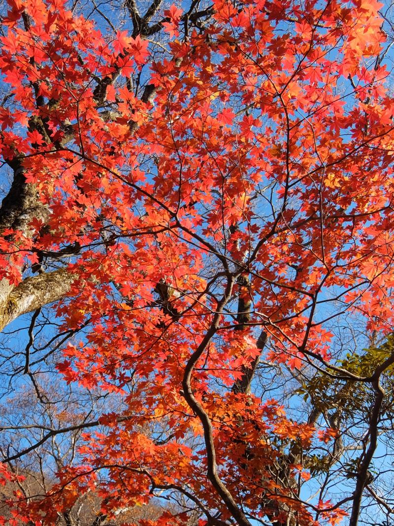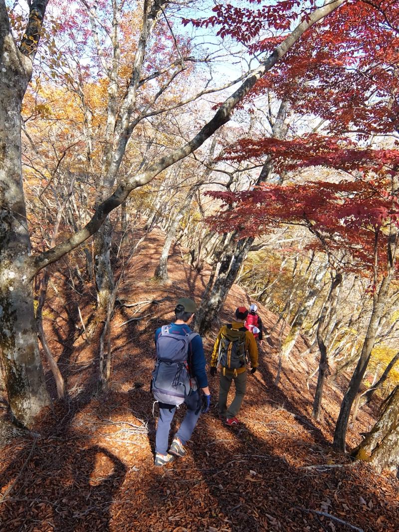 日の当たる南斜面は現在見ごろを迎えていますが、日の当たりにくい北斜面の紅葉はすでにおわっているところもあります。