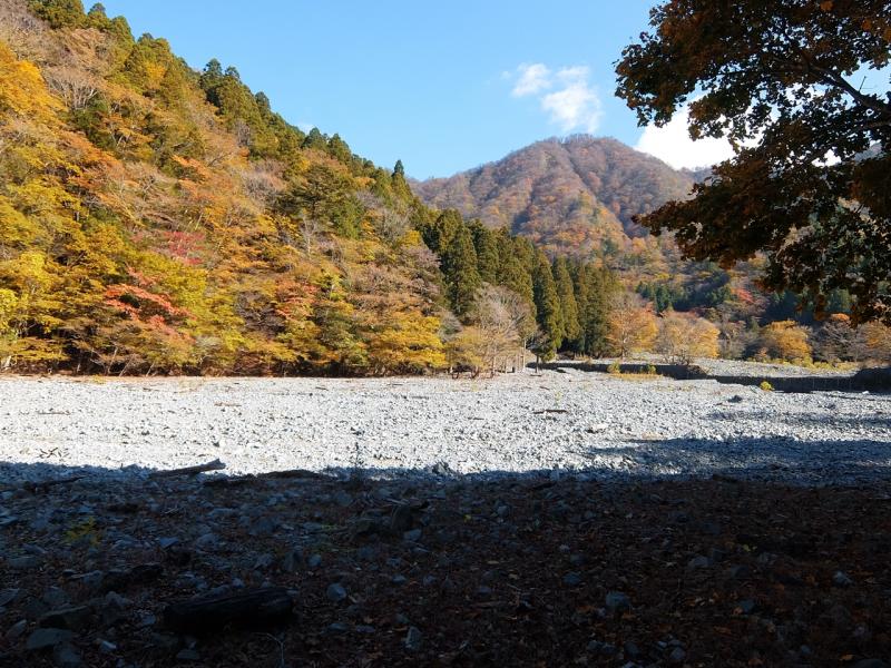ルートマークを参考に進むと、オガラ沢出合ではなく鍋割沢河原に出た。