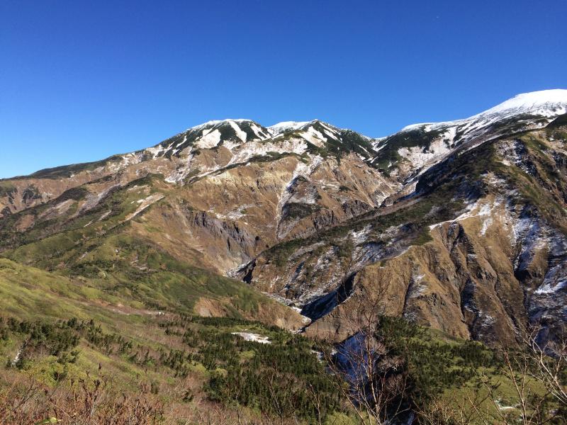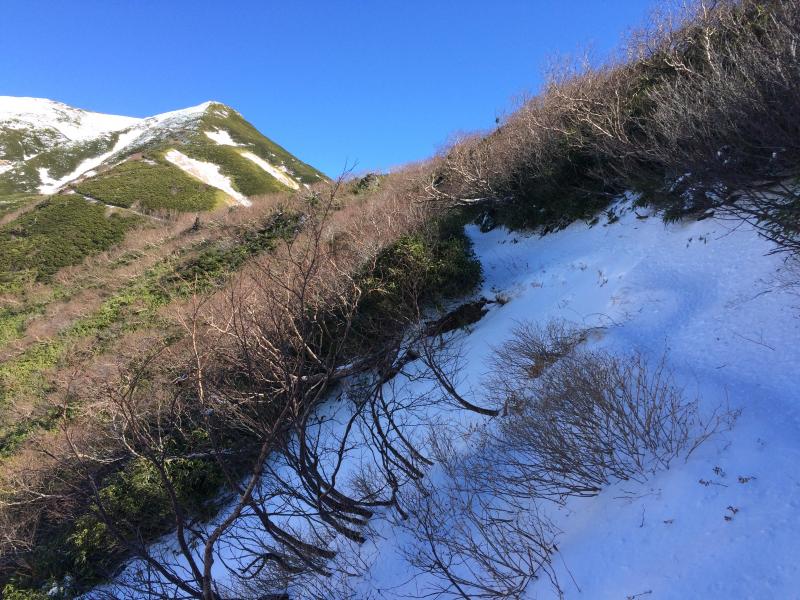 - 釈迦岳山頂手前から雪上歩行