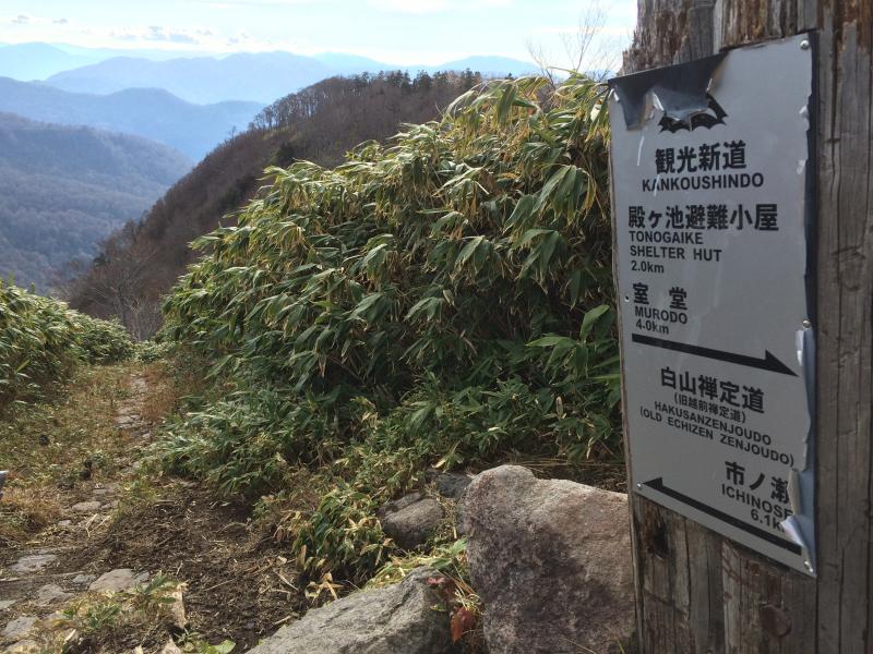 - 市ノ瀬~(110)~白山釈迦岳~(135)~大汝峰~(30)~御前峰~(17)~室堂~(110・観光新道・白山禅定道経由)~市ノ瀬