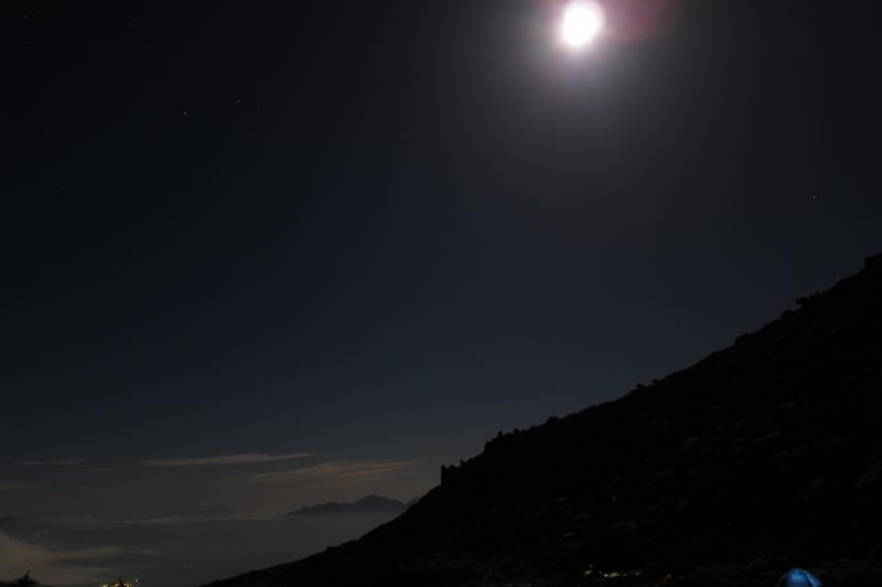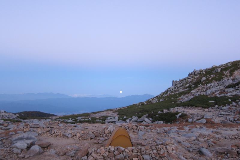 くしくもこの日は、中秋の名月!澄み切った秋の高山の空気の中、美しい月と、照らされる南アルプスの絶景を堪能。(おかげで飲み過ぎて翌日二日酔いでしたが…笑)