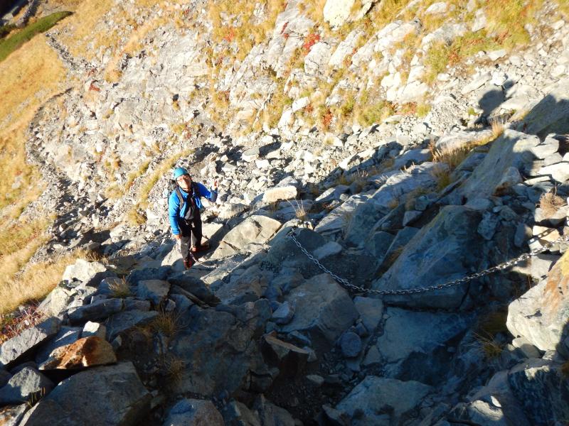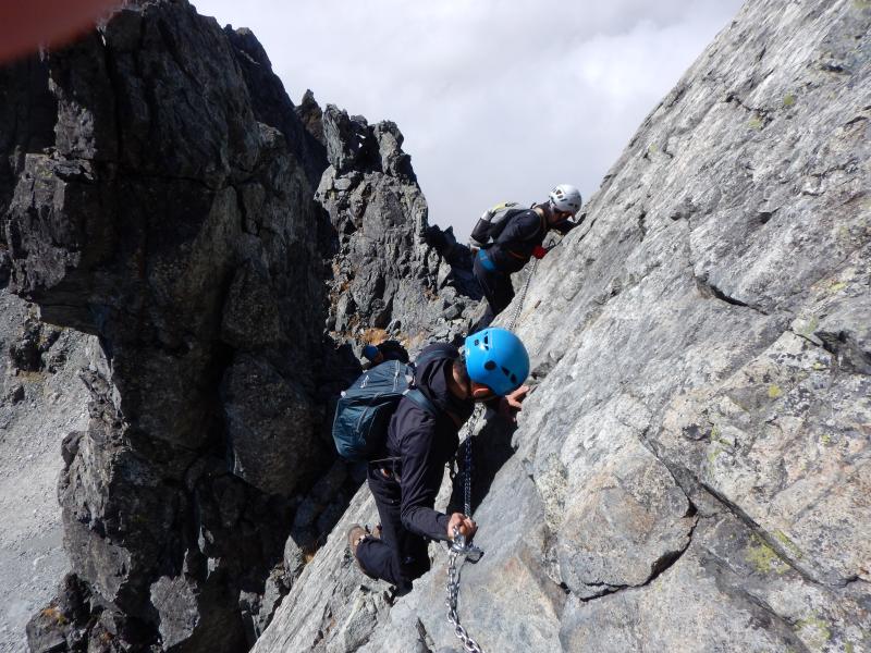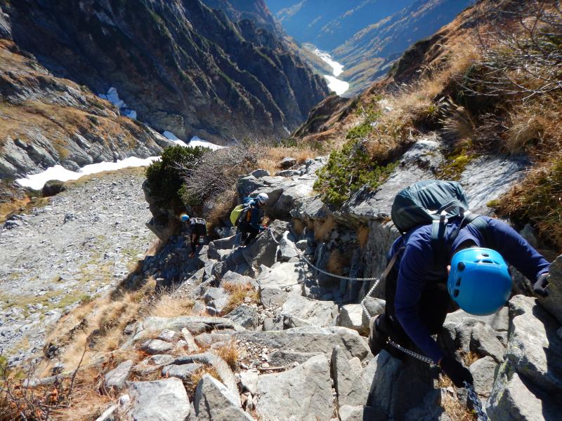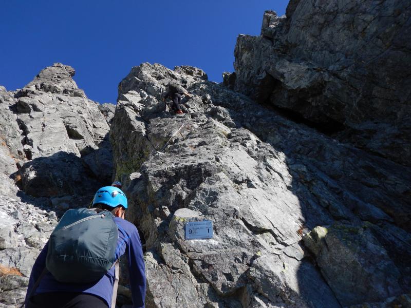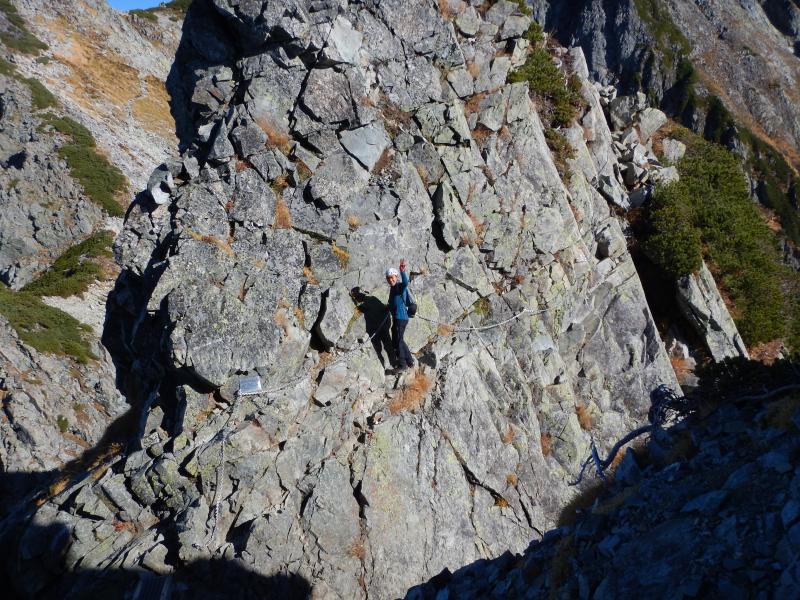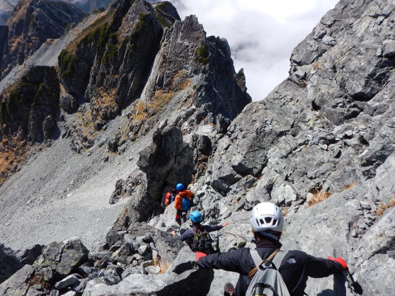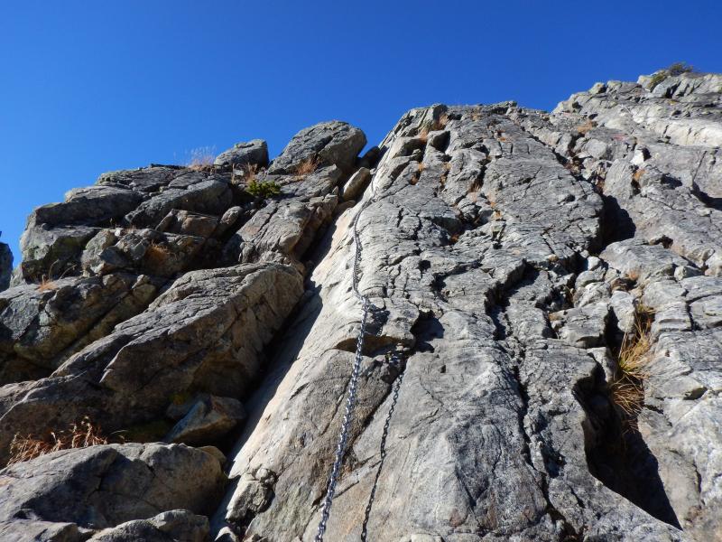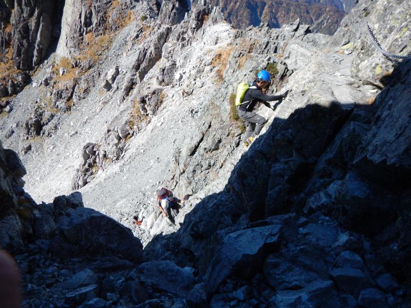 危険個所 剱岳の登山中は常に緊張を強いられます。鎖や杭などの補助も多いので見た目の難易度よりも安心して通過できるところもありますが、カニのたてばいや横ばいなどのさらに危険性の高いところでは、ハーネスか簡易ハーネスを使用して通過するのが好ましいです。