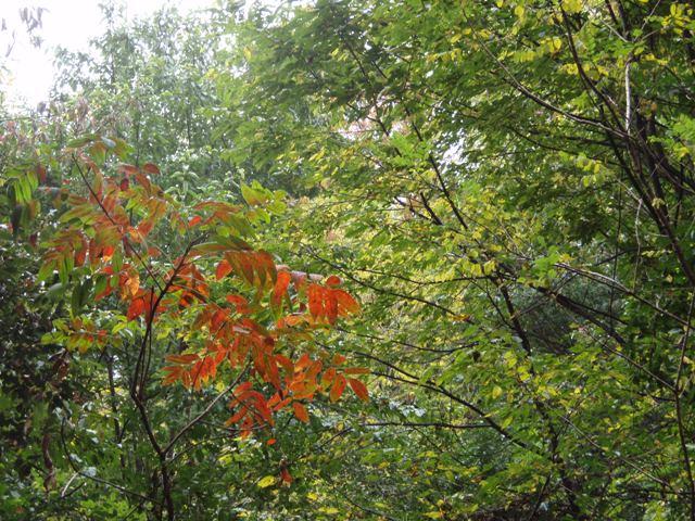 約80分で若山山頂に到着。三角点あり、展望なし。気温18度。紅葉は若山神社で一部の樹木のみ。山はまだまだ先になりそうです。