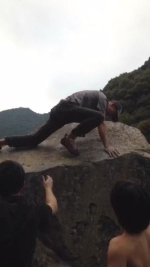 ネタのために登ってくれましたが、完登後、何か言ってとリクエストすると、「坊やだからさ」とガンダム世代でもないのに支離滅裂なセリフを発していました。