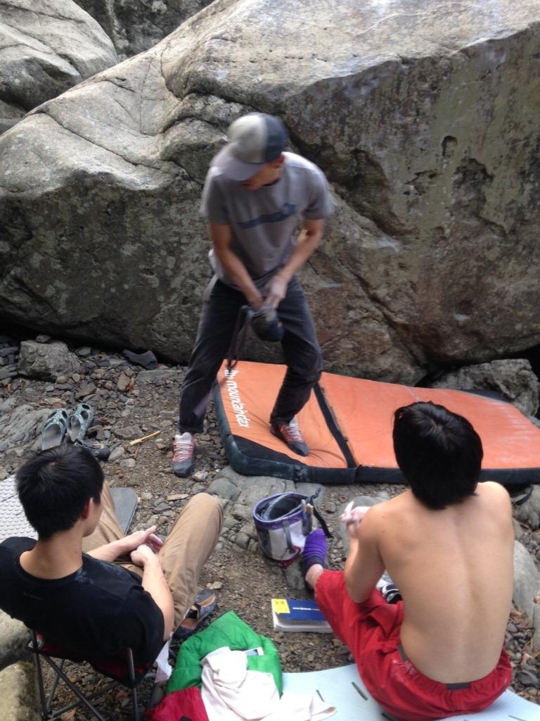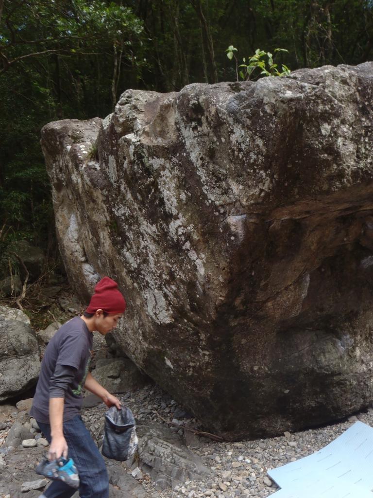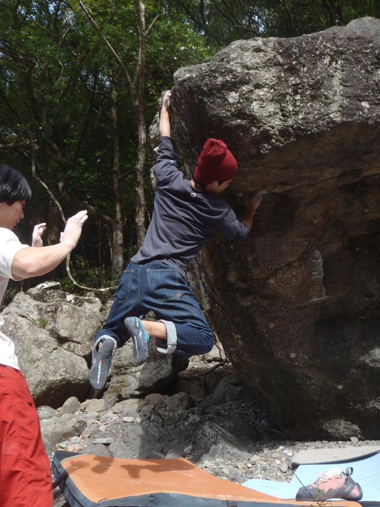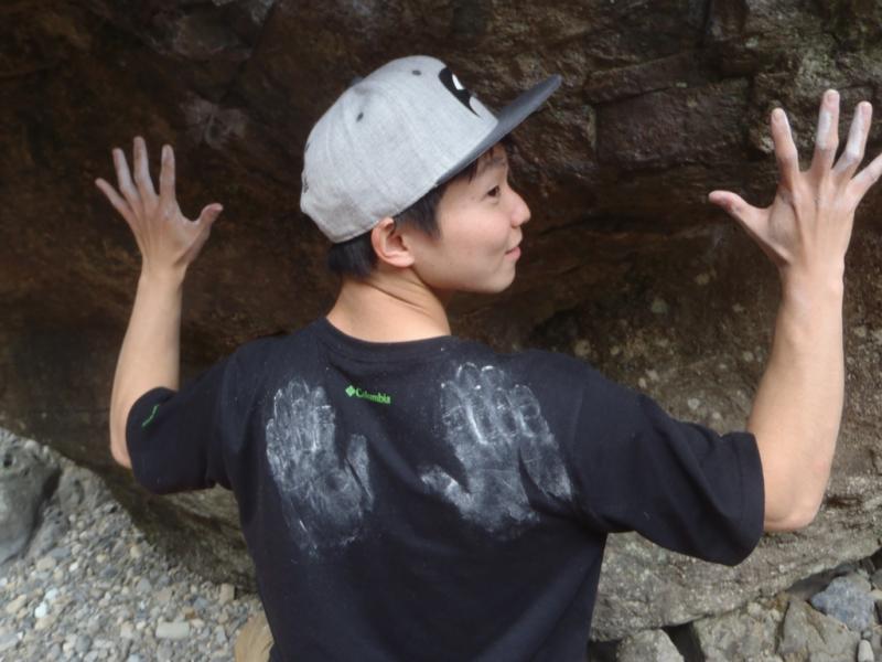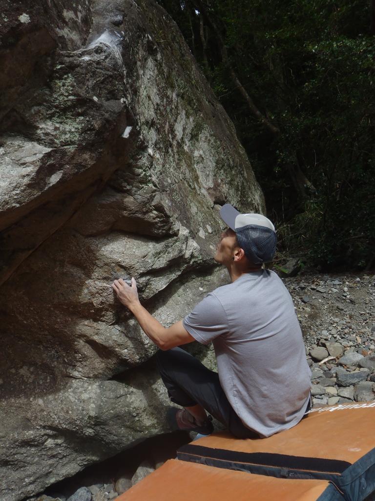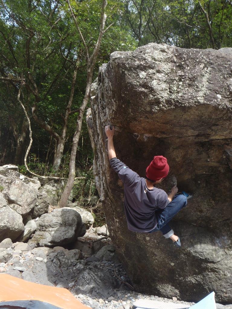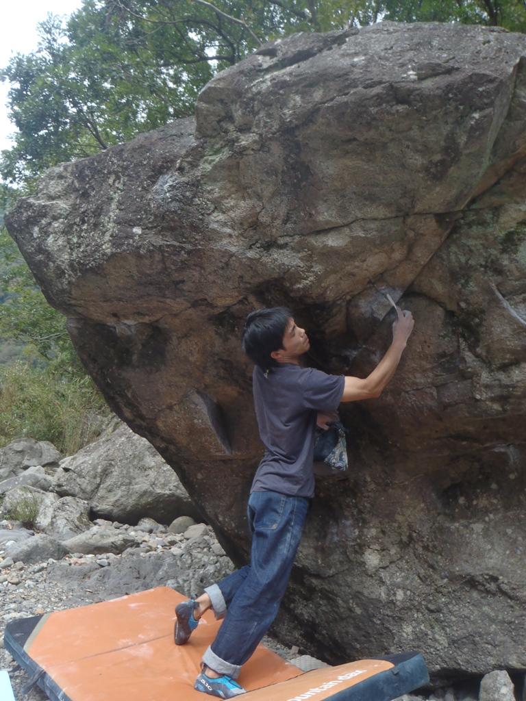 あまり登られてなさそうな勝浦川の右岸側の課題ですが、意外にもチョークが付いてました。