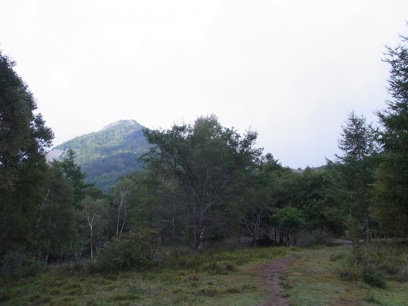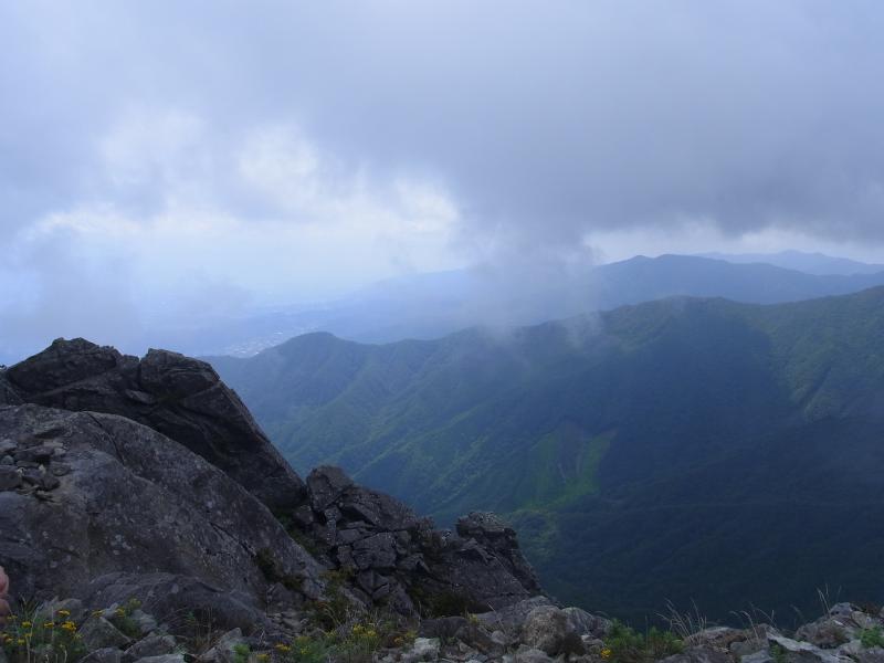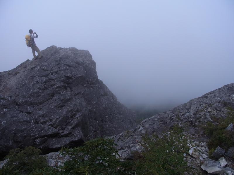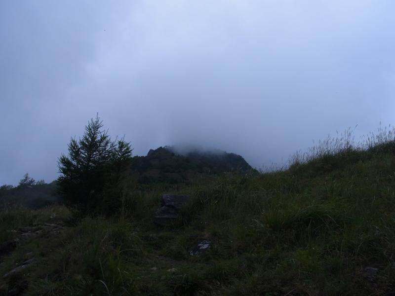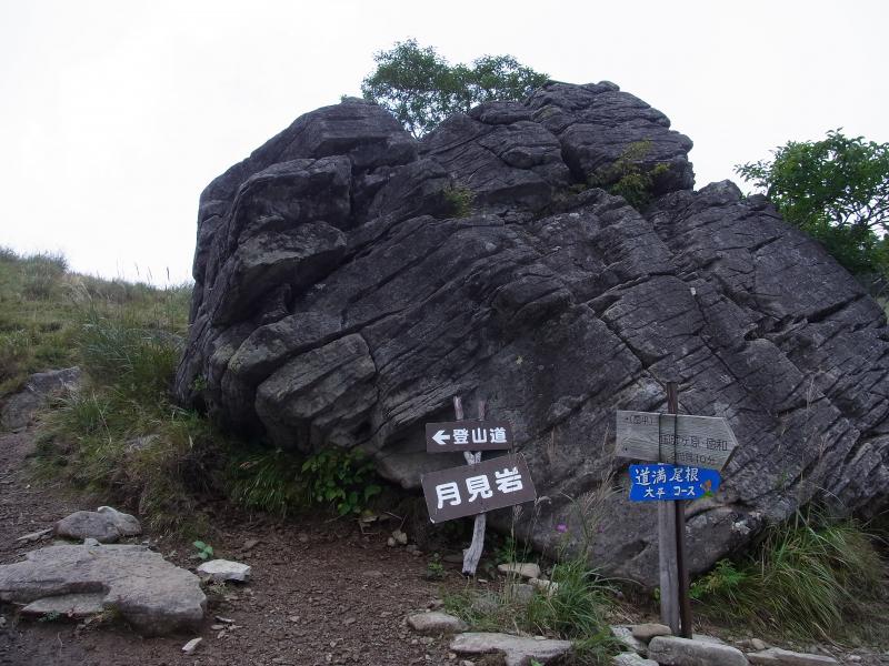 ここから少し登ると月見岩が見えてきます。山頂の様子が見えるはずですが、曇っている。嫌な予感。
