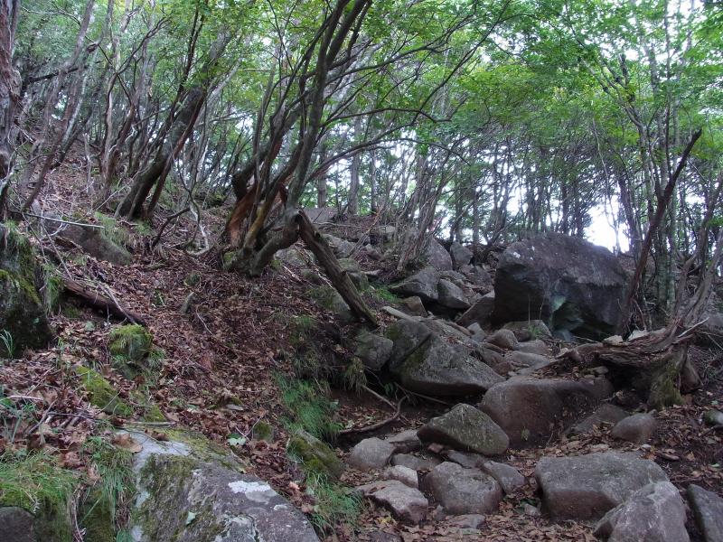 月見岩を過ぎたあたりから、岩場が多く出てきます。ドーンと大きな岩に圧倒されつつ、クリアすると、