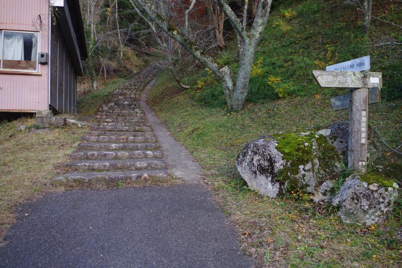 案内板など有ります、一刀石への道は里山の未舗装路です