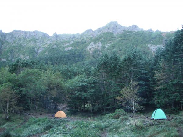 行者小屋でテント泊しましたが、冷え込みがすごく朝にはフライシートがバリバリに凍っていました。昨年9月半ば、黒百合ヒュッテでテントを張った時にはここまで寒くありませんでした。秋が駆け足でやって来ている気がします。