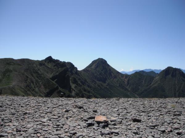 稜線上は滑りやすいガレ場や、浮石が多かったです。