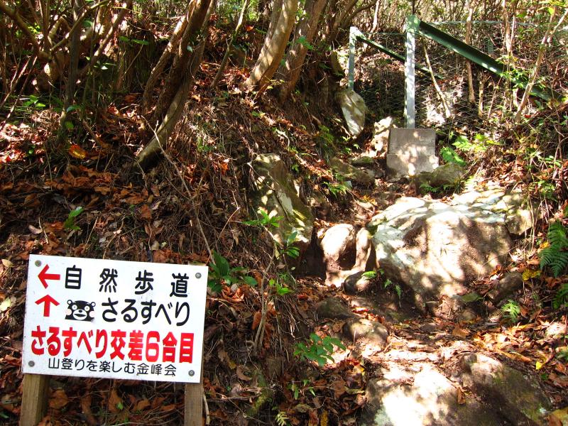 さるすべり公衆トイレから金峰山山頂までは「自然歩道コース」と「さるすべりコース」が選択できます。