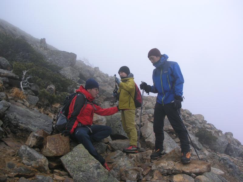 カラ荷で山頂を目指しますが、あまりの暴風の為この日は断念。