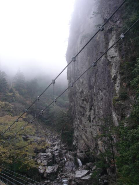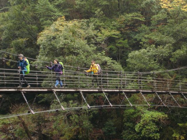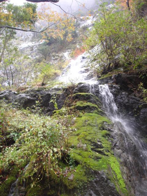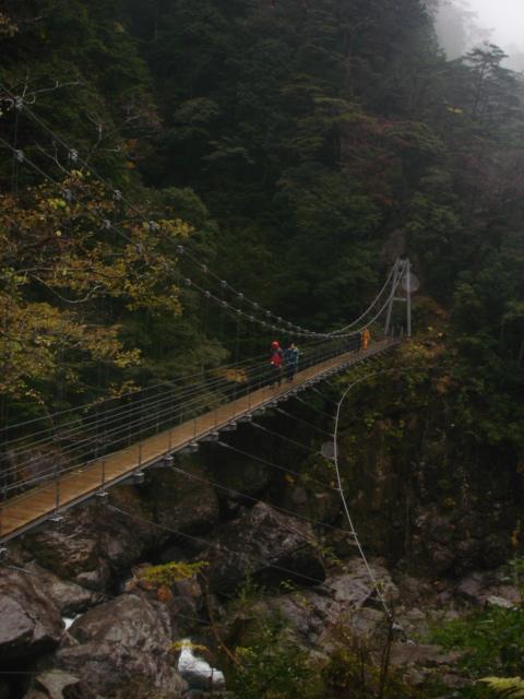 今回も20年振りの山です。長い間通行止めだった大杉谷が昨年開通したので、紅葉は終りですがシーズン最後に出掛けました。出発前から雨予報の為何時もの様な登山前の高揚感は有りませんでしたが、歩き始めると大杉谷の渓谷美に一気に気分が高まり雨でも楽しく歩けました。雨という事で足場が滑りやすく気を使いますがシッカリと鎖が整備されているので安心して歩けました。