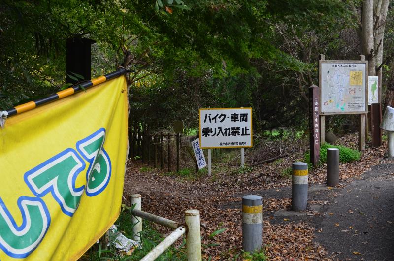 月見山駅から北上すると阪神高速月見山ICの交差点に出て、その道をさらに北上すると、左手に「須磨名水の森入口」という標識が出てきてそこを入っていきます。