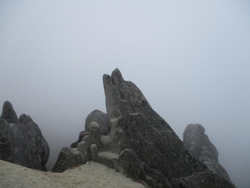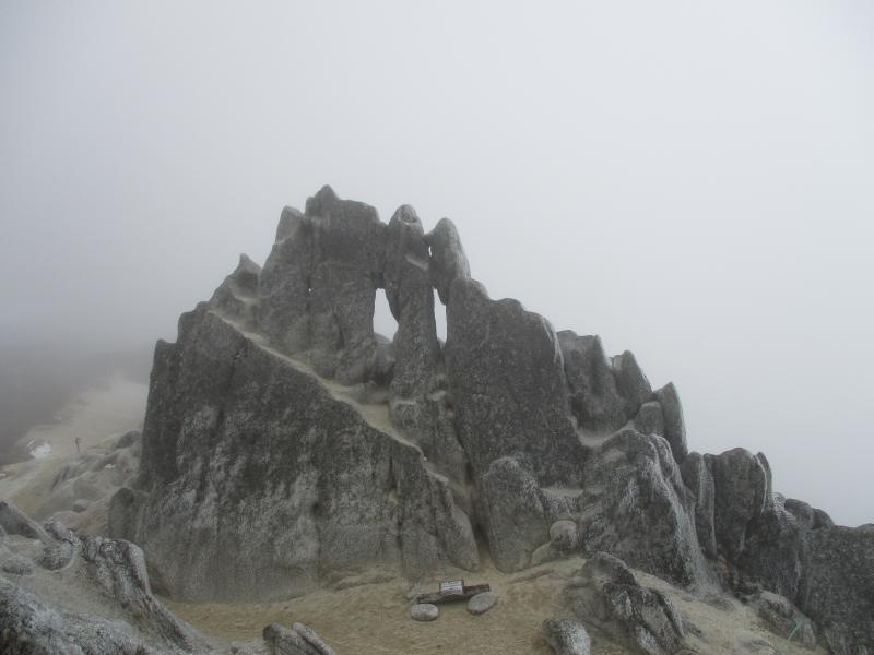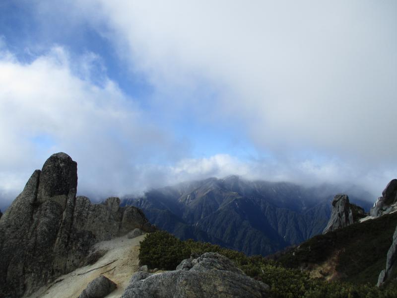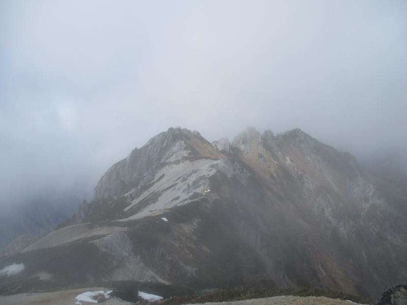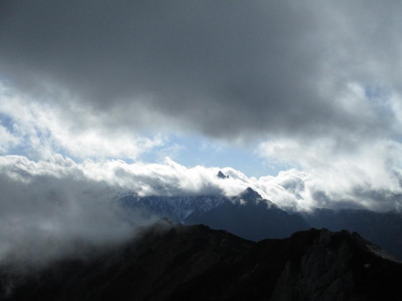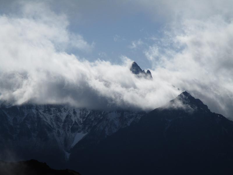 天気は下り坂でしたが、燕山荘からは雲の中に浮かぶ槍の穂先が!!