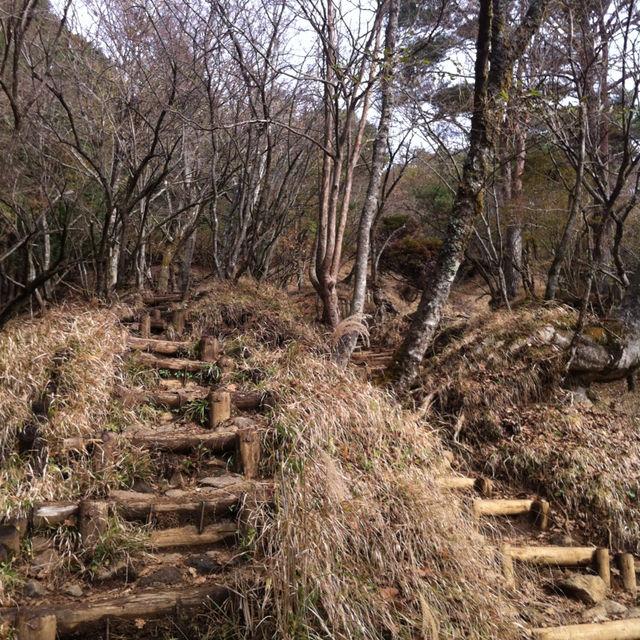 その後は階段に続く階段、階段景色とひたすら戦い続け、山頂に到着。