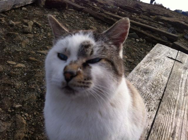 周りのハイカーさんに聞いたら、山小屋で買ってる猫ちゃんらしいです。