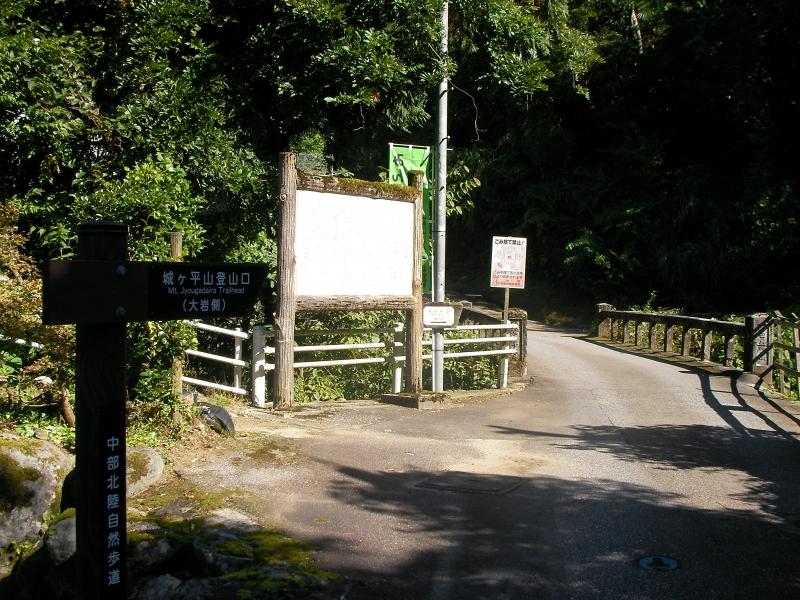 - 大岩登山口(20分)上ノ平(50分)城ヶ平山山頂(20分)浅生分岐(20分)浅生登山口(40分)大岩登山口